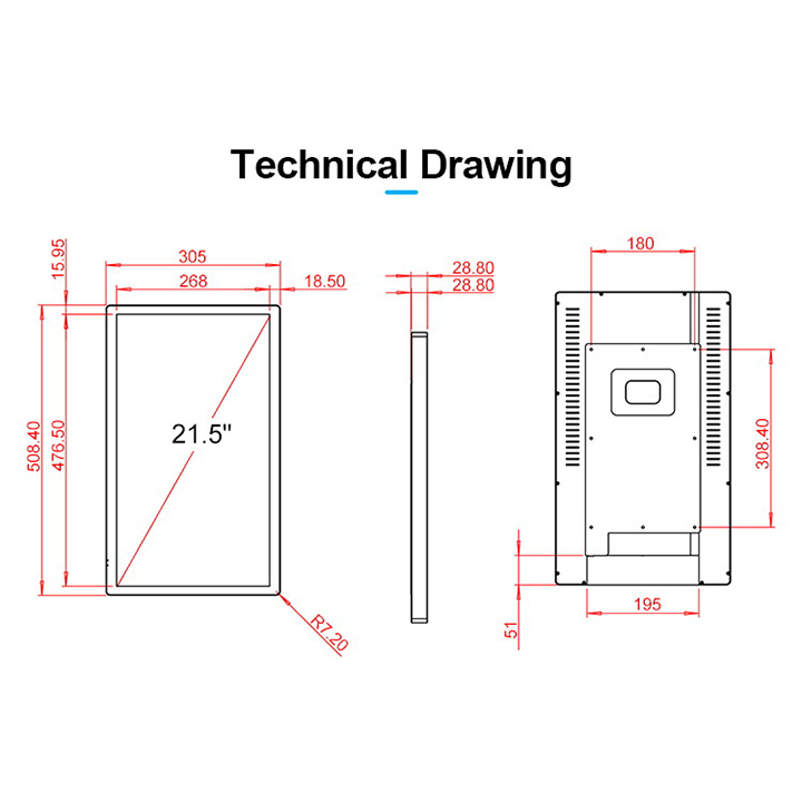 | Installation: | Wall-mounting VESA holes 108x308.40mm |