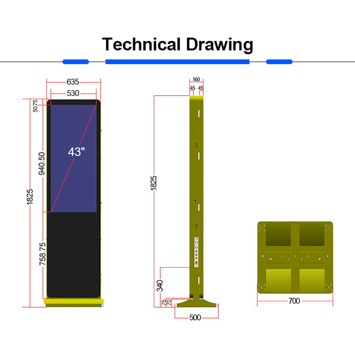 • 43 Inch Dual Screen Floor Stand Lcd Digital Signage