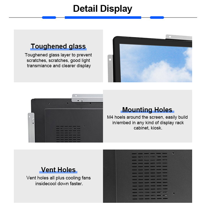 | Touchscreen | Capacitive(PCAP)touch/Resistive touch/IR touch |