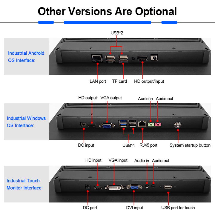 1.Standard HDMI/DVI/VGA inputs, DP optional